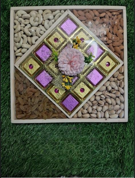 Assorted Flavors: Includes a variety of chocolates such as milk, dark, and white, along with festive flavors or ingredients like saffron, cardamom, or nuts.